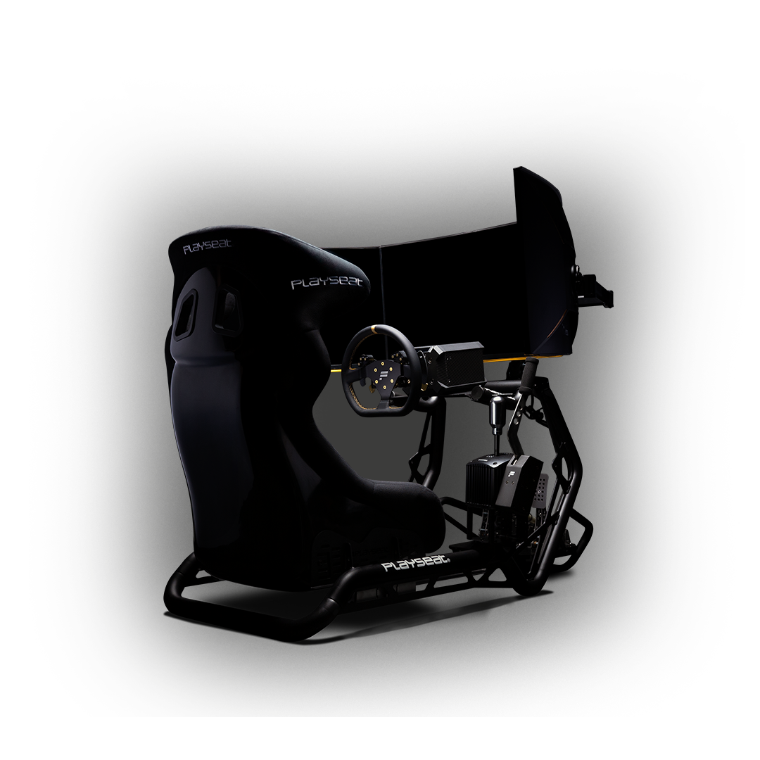 Echtes Formel 1 Gefühl im PLAYSEAT Liegesitz, FANATEC DD2 PODIUM Formel 1 Lenkrad und 2 HEUSINKVELD ULTIMATE Pedalen.